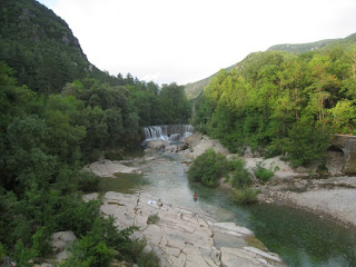 De leukste en tevens zwaarste rit voert met ruim 2000 hm naar de col de minier. Tot St. Laurent le Mineur worden de benen warm gedraaid. Bij de waterval is het rustig. Slechts één persoon is in de rivier aan het baden. Zonder gêne want kleren heeft ze niet aan. En de flink uit de kluiten gewassen rondingen zijn goed zichtbaar. Maar het is nog vroeg en in het Franse dorp is het nog heerlijk rustig. Straks krioelt het hier weer van de dagjesmensen die genieten van het heerlijke zwemwater.